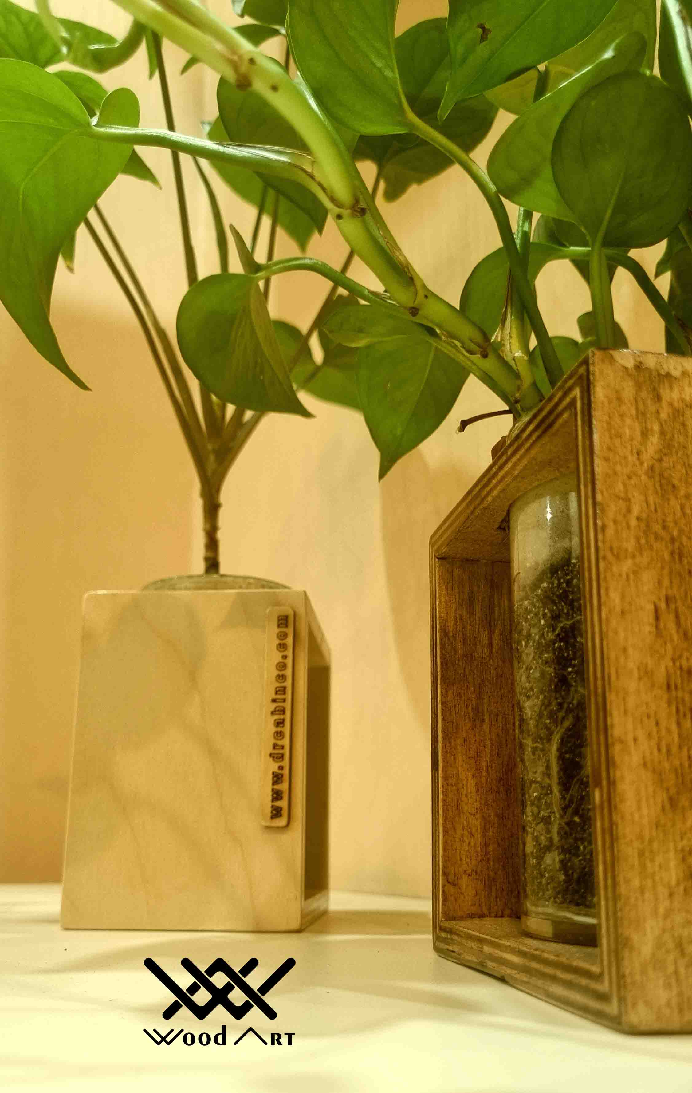 گلدان ترکیبی چوب و شیشه